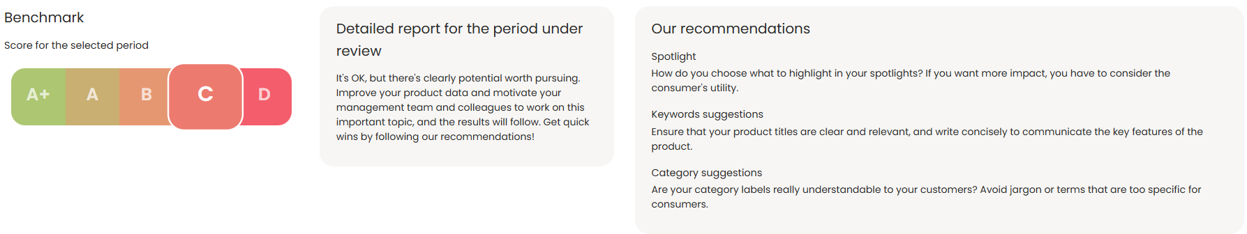 When possible Sensefuel also provide an analysis of your performance, benchmark within the same sub industry as well as some recommendations.