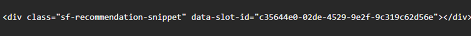 A snippet is piece of code composed of a “div” with a class named “sf-recommendation-snippet” and a data attribute containing the slot id.