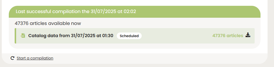 - In order to verify the list of imported products (and eventually offers), download the last files used by Sensefuel from the Import Monitoring screen by clicking on the icon