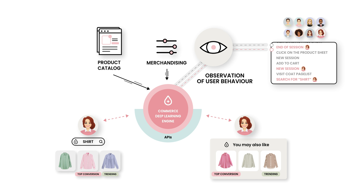 Our exclusive Deep Learning engine, coupled with the potential of generative AI, enables you to offer innovative shopping experiences that combine demand understanding and business acumen.
