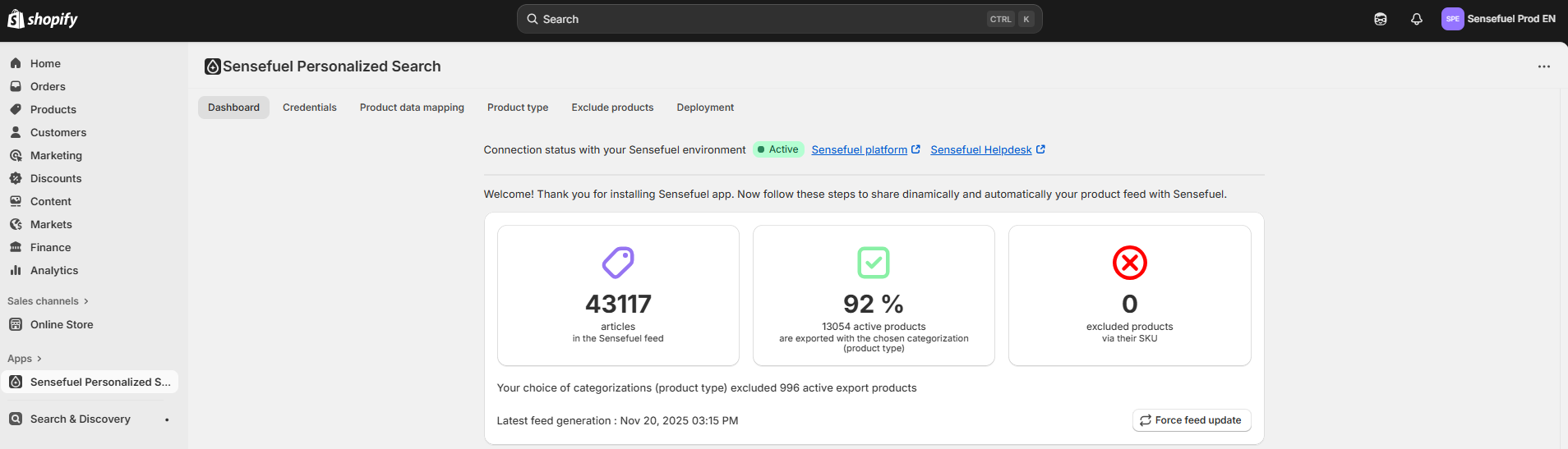 Shopify Sensefuel App Documentation