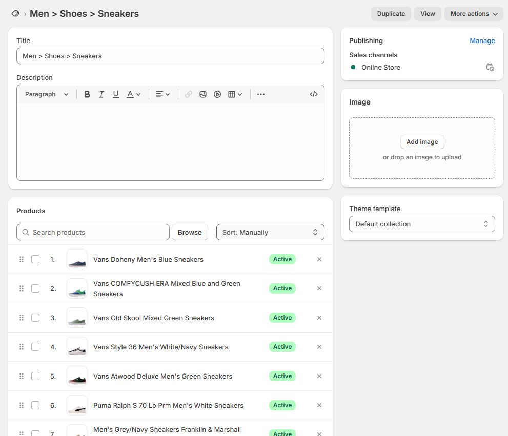 - Any manual ranking changes in Shopify will be overwritten at every synchronization.